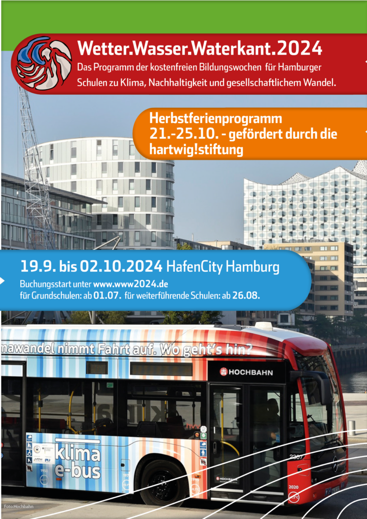 Nachdem nun auch unser Ferienprogramm mit vielen schönen inspirierenden Veranstaltungen zu Ende gegangen ist, lohnt sich ein kurzer Blick nach vorn: Wir freuen uns auf ein kleines Jubiläum im nächsten Jahr mit der dann zehnten Auflage der Wetter.Wasser.Waterkant.-Bildungswochen vom 19. September bis zum 2. Oktober 2024.